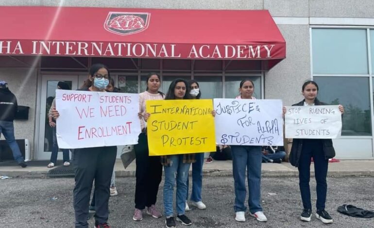 -Dozens of Indian International students protest outside of Alpha International Academy in Scarborough to get a guaranteed opportunity from the management to complete the courses they were officially accepted and paid for.